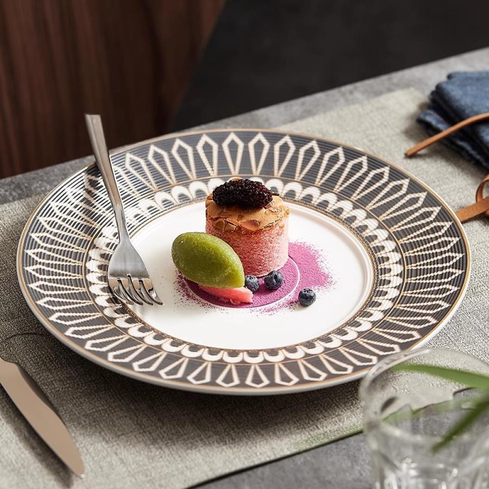 This elegant White And Black Texture Ceramic Dinner Plate is designed to enhance both the functionality and aesthetics of any meal setting. Whether you're hosting a family dinner at home or serving a variety of dishes in a bustling cafeterيا, this plate brings a pop of vibrancy with its bold color combination. The white on black design offers an timeless appeal while maintaining reliability for commercial use.
